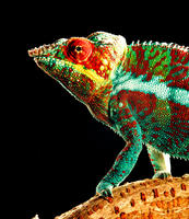 变色龙的皮肤会随着背景、温度的的变化和心情而改变;雄性变色龙会将暗黑的保护色变成明亮的颜色,以警告其它变色龙离开自己的领地;有些变色龙还会将平静时的绿色变成红色来威胁敌人。目的是为了保护自己,避免遭袭击,使自己生存下来。