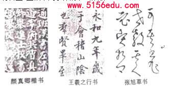 材料三 三幅不同字体的书法作品。