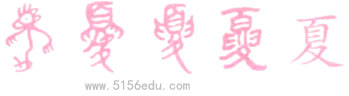 ①甲骨文中的“夏,” 就是一个人的象形:头、发、眼、身躯、两臂、腿脚一应俱全,双手摆开呈现一种强而有力的架式。